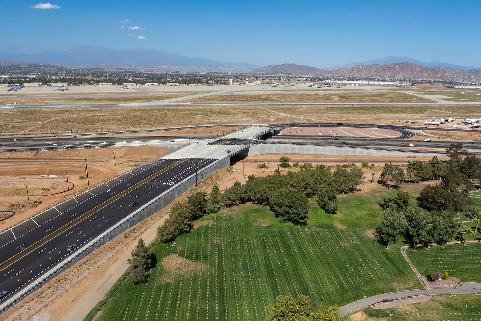 Visual design elements were integrated into the bridge structures, retaining walls, and surrounding landscaping to reflect the area’s military heritage. Moreover, regional access to the Riverside National Cemetery and March Air Museum was significantly enhanced as a result of the new interchange. The project team was recognized with the American Planning Association’s 2015 IES-APA Urban Design Award for their work in urban planning and design.