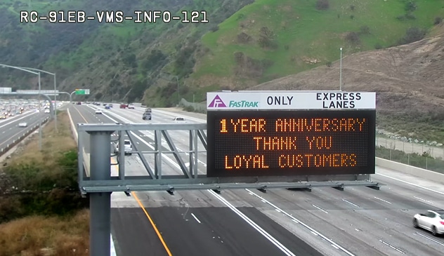 RCTC thanks its loyal customers for making the 91 Express Lanes such a success. We’ve had an amazing 365 days: