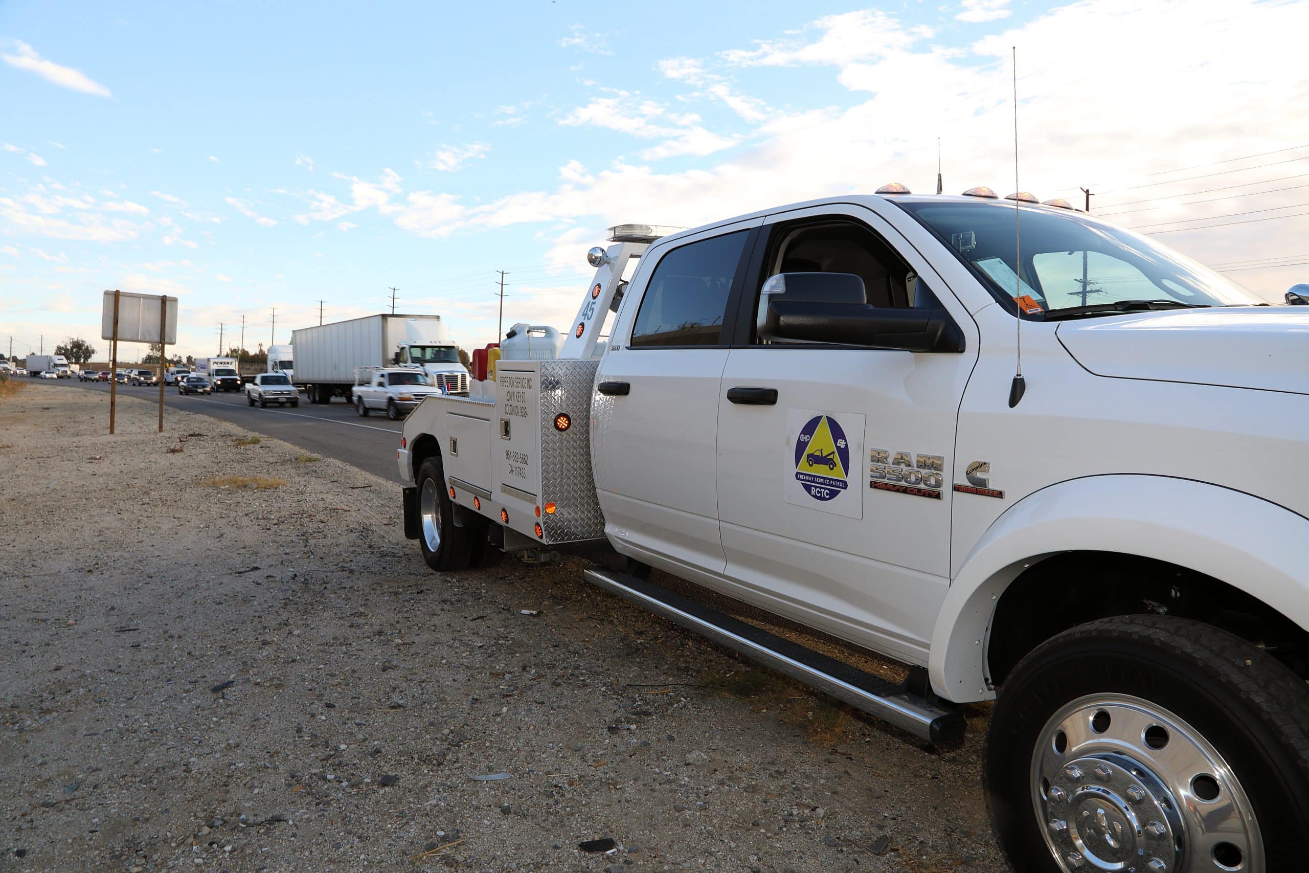 Being stuck on the side of the road with a flat tire or dead battery can ruin an otherwise perfectly sunny day. The Riverside County Transportation Commission administers a Freeway Service Patrol program in partnership with Caltrans and the California Highway Patrol to help stranded motorists on busy highways in western Riverside County. From taping radiator hoses and changing tires, to towing you to the nearest CHP-approved location, this free service keeps traffic moving and helps prevent secondary accidents.
